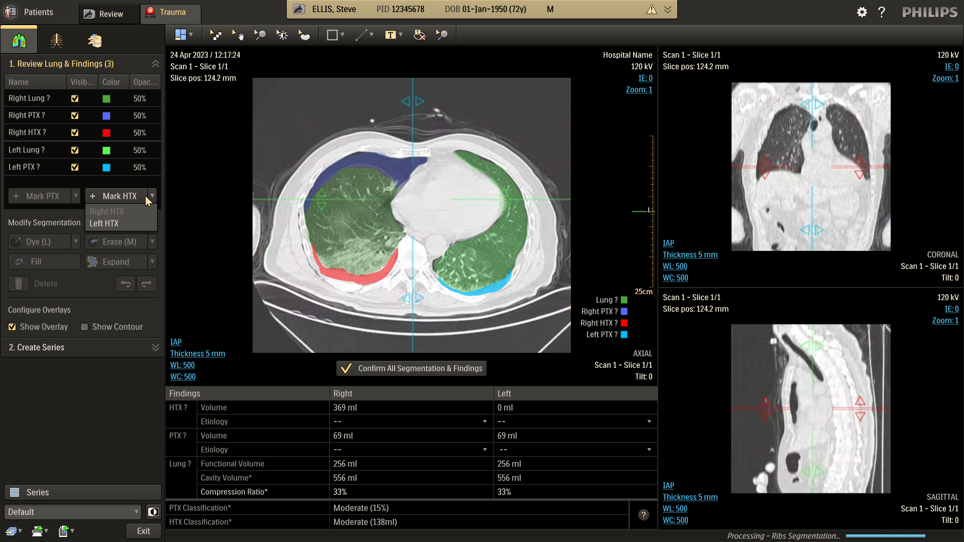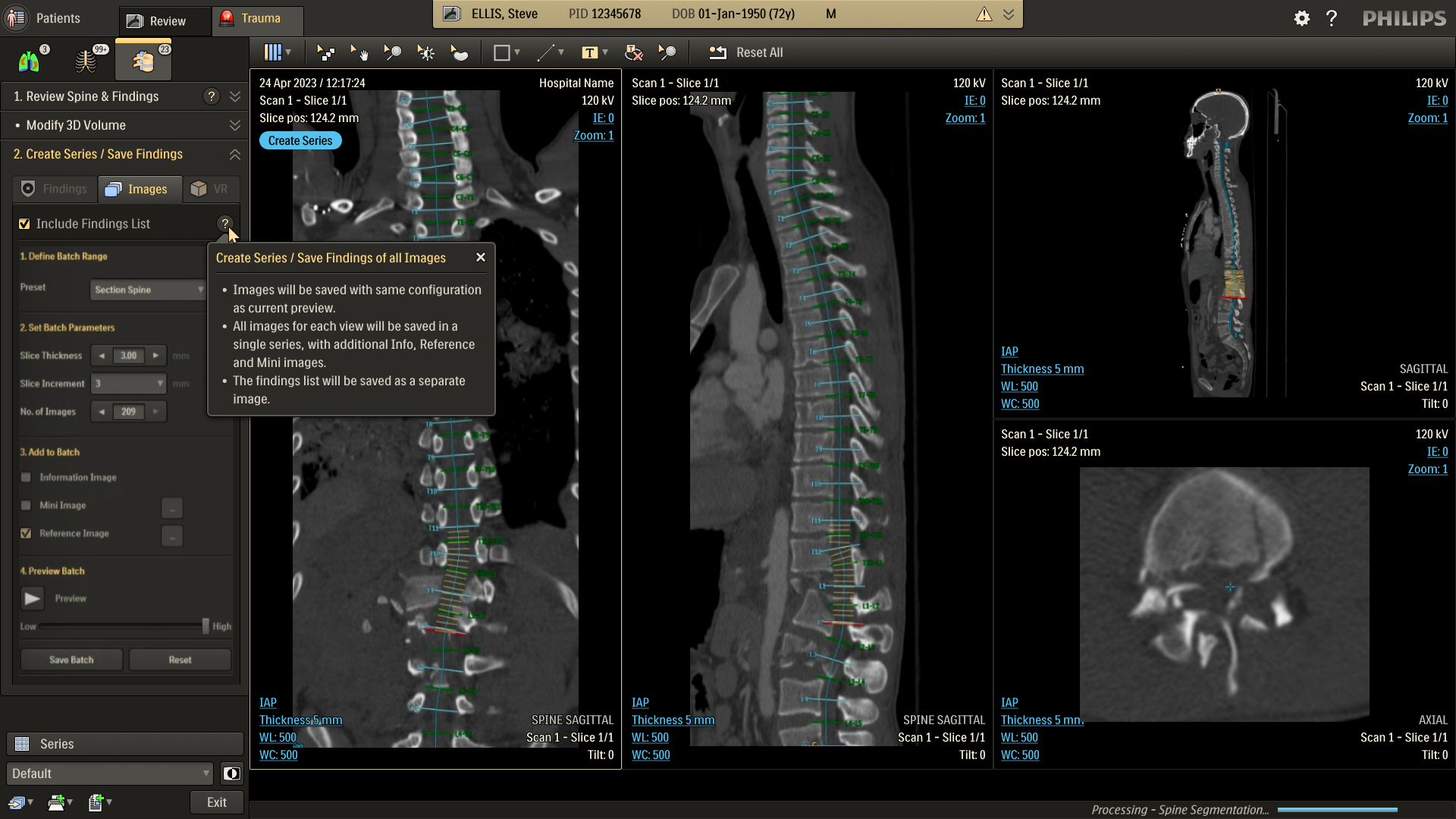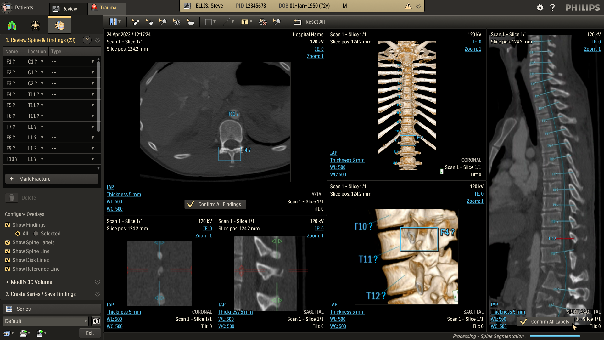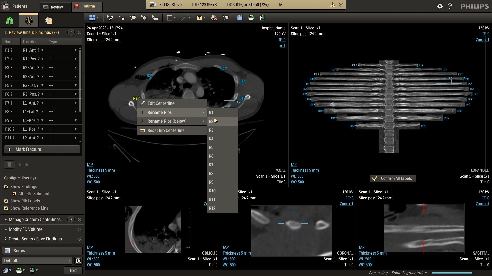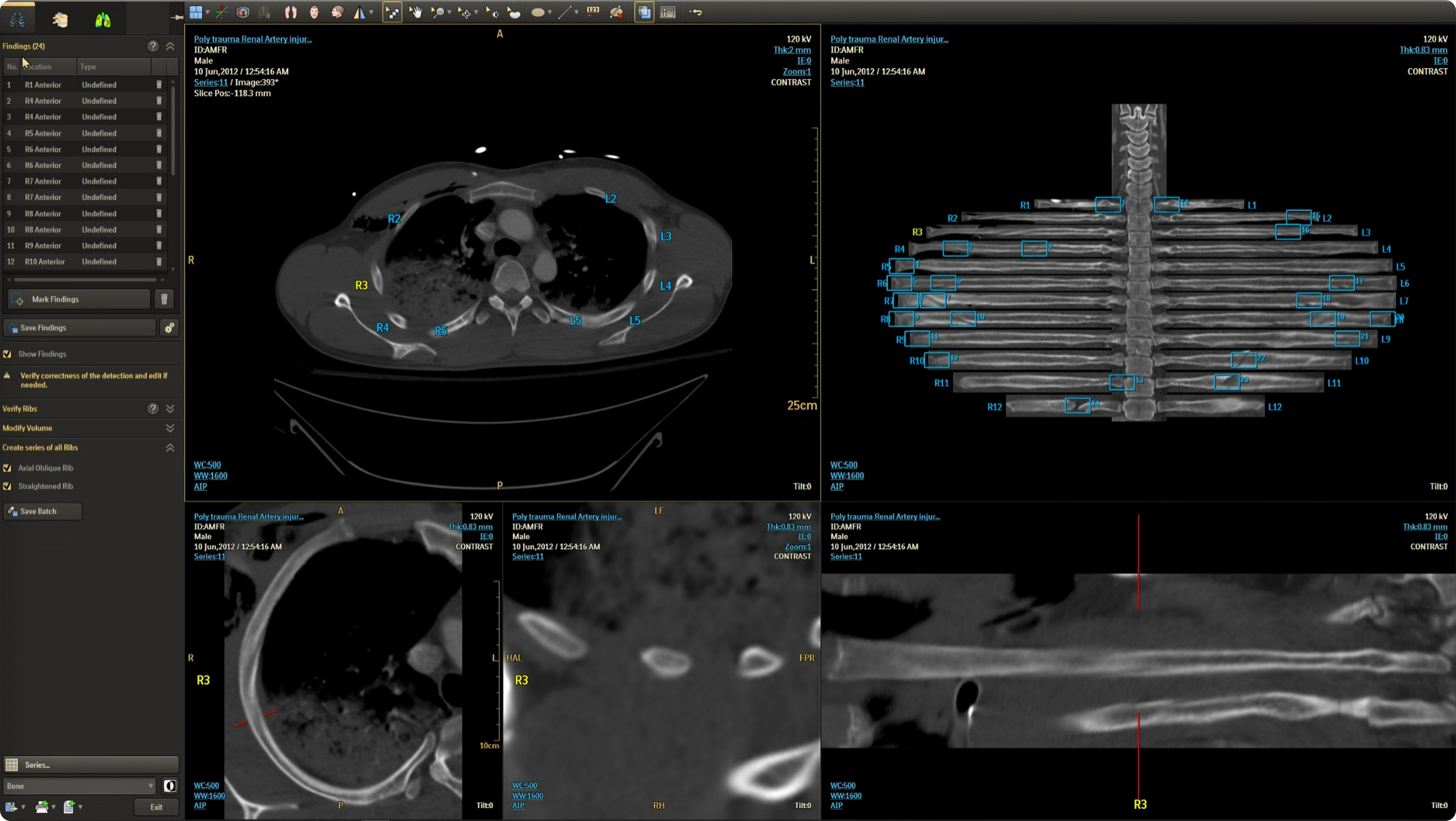The CT Trauma app, built on this process, is meant to accelerate scan reading by auto-generating specialized visuals, labels, and findings, enabling emergency teams to quickly detect critical injuries and start life-saving treatment. The initial version was planned to offer three modules, covering Lung, Ribs, and Spine.